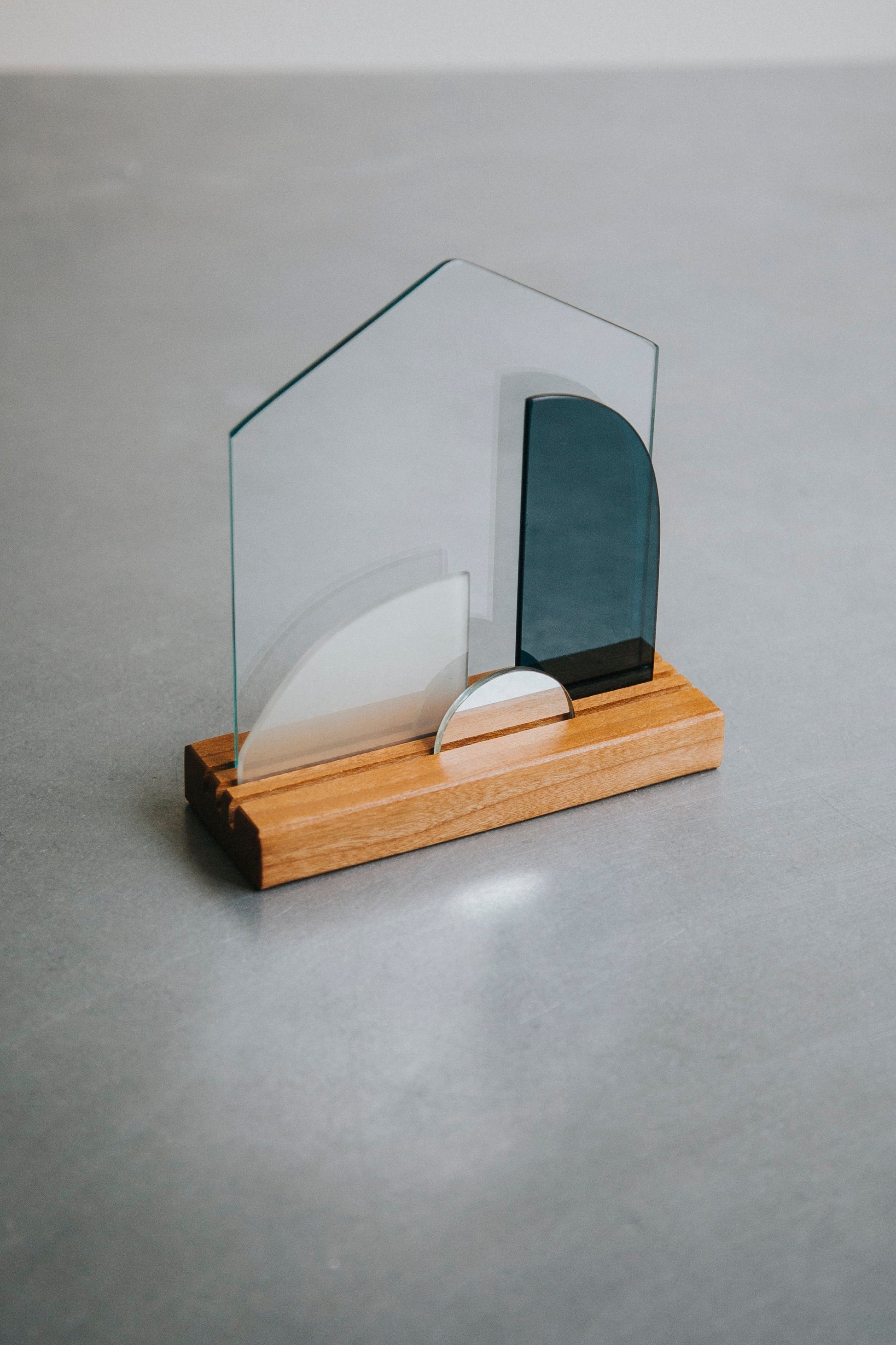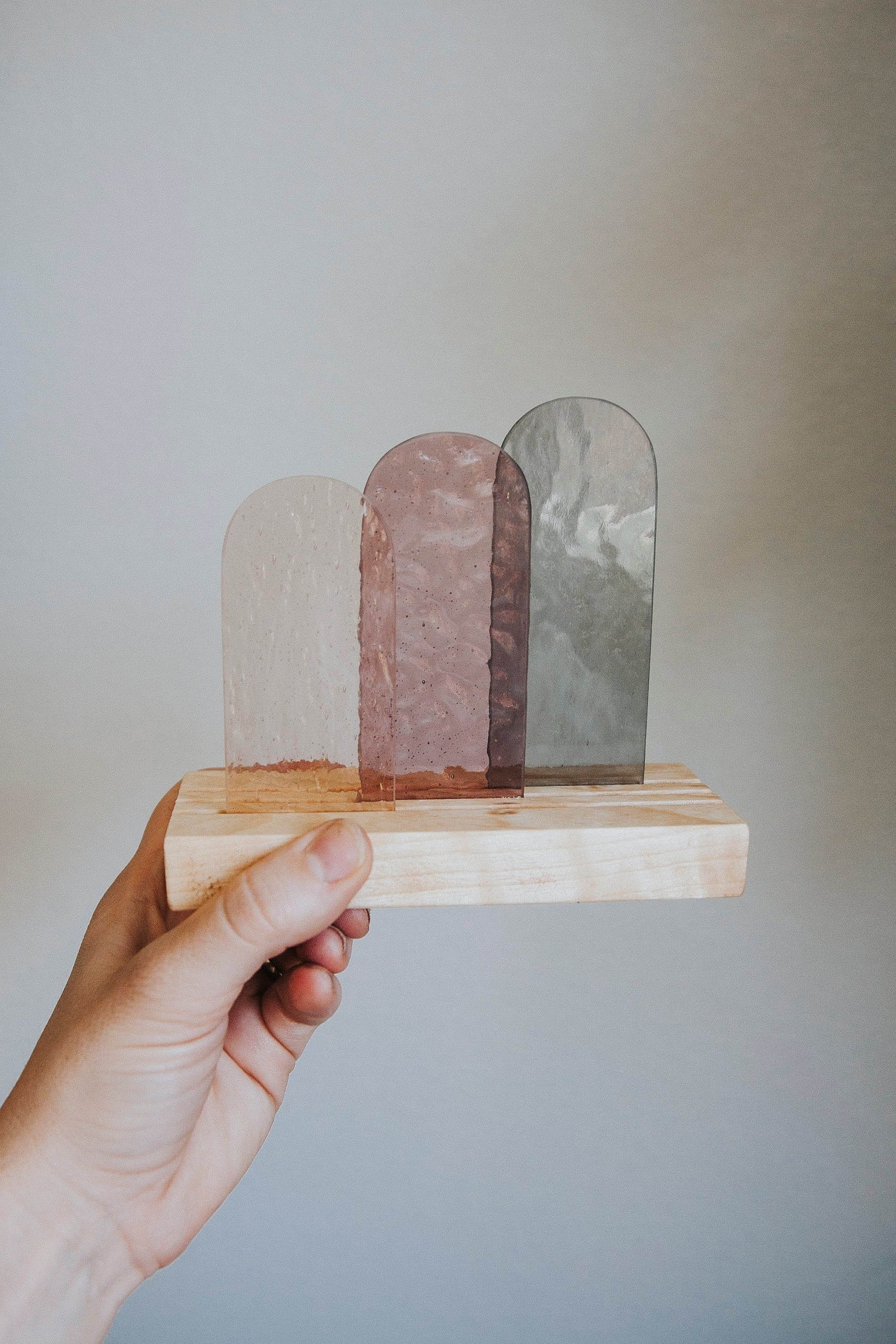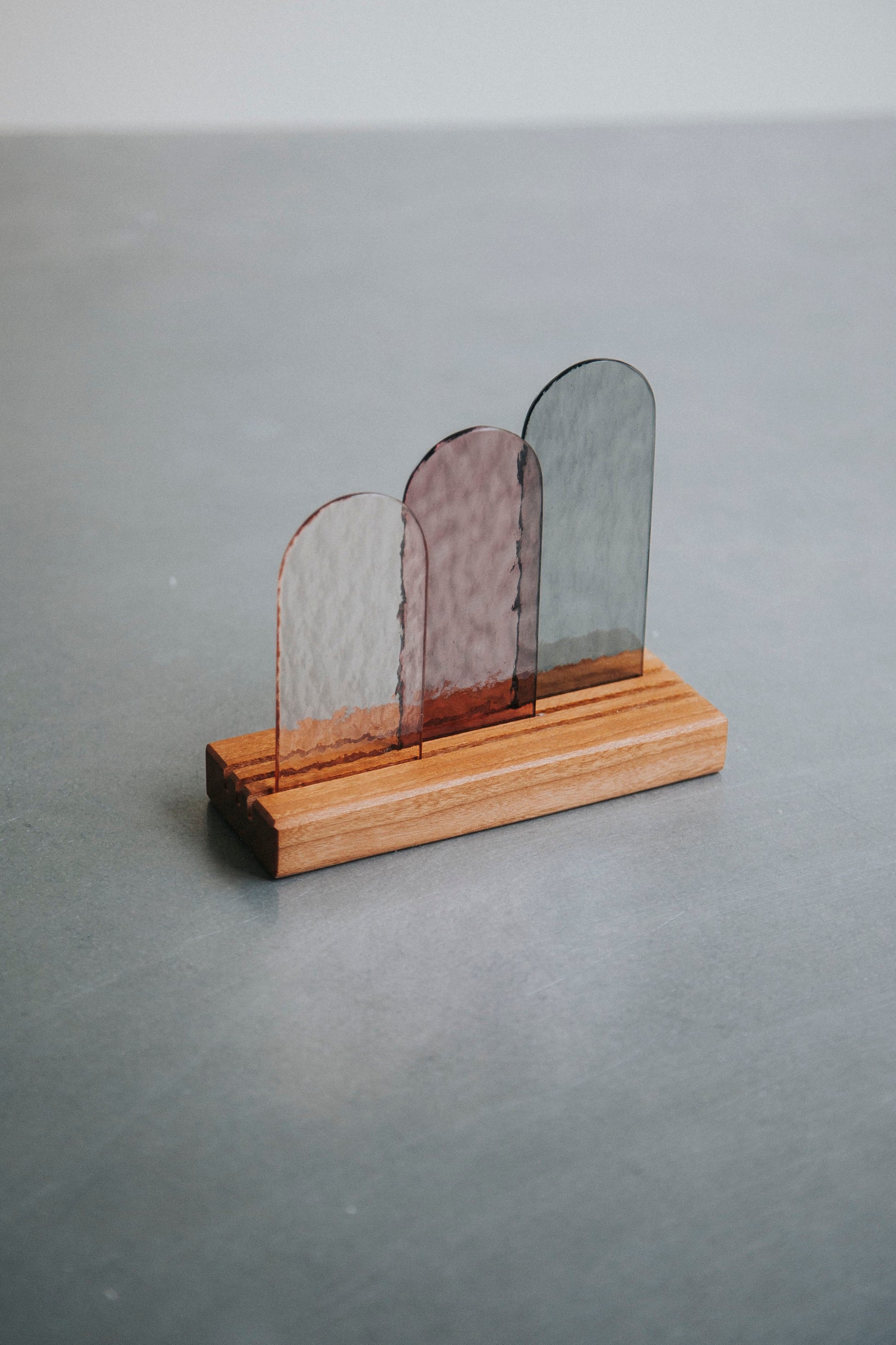 Modern Nativity is a unique, handcrafted piece, designed by the artist. Each piece of glass is hand cut, edges are polished & then adhered into a wood base. Wood bases are cut by hand, by artist’s woodworking husband of Sylvester & Sons. Glass & wood colors can vary slightly or appear slightly different in person than on screen.