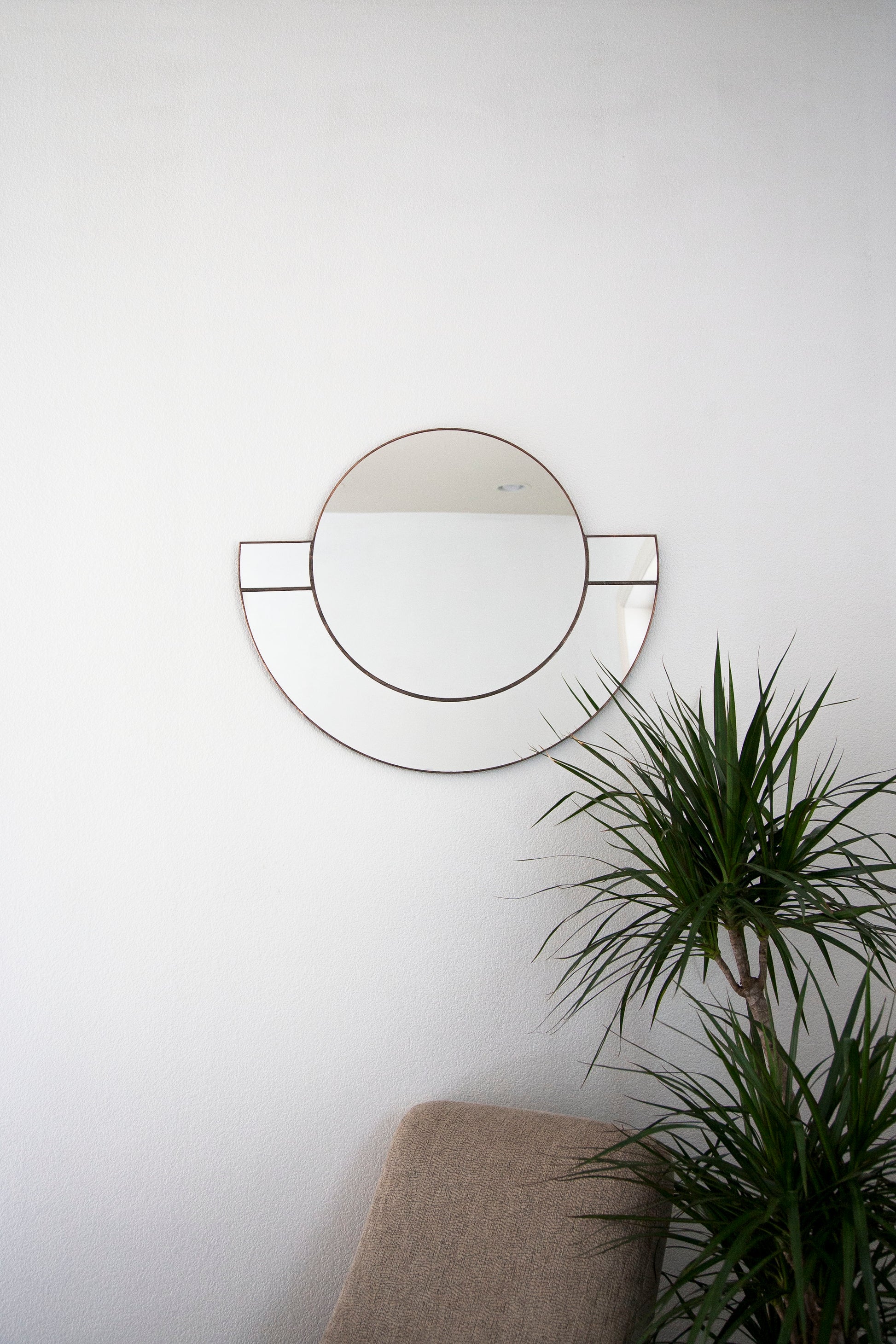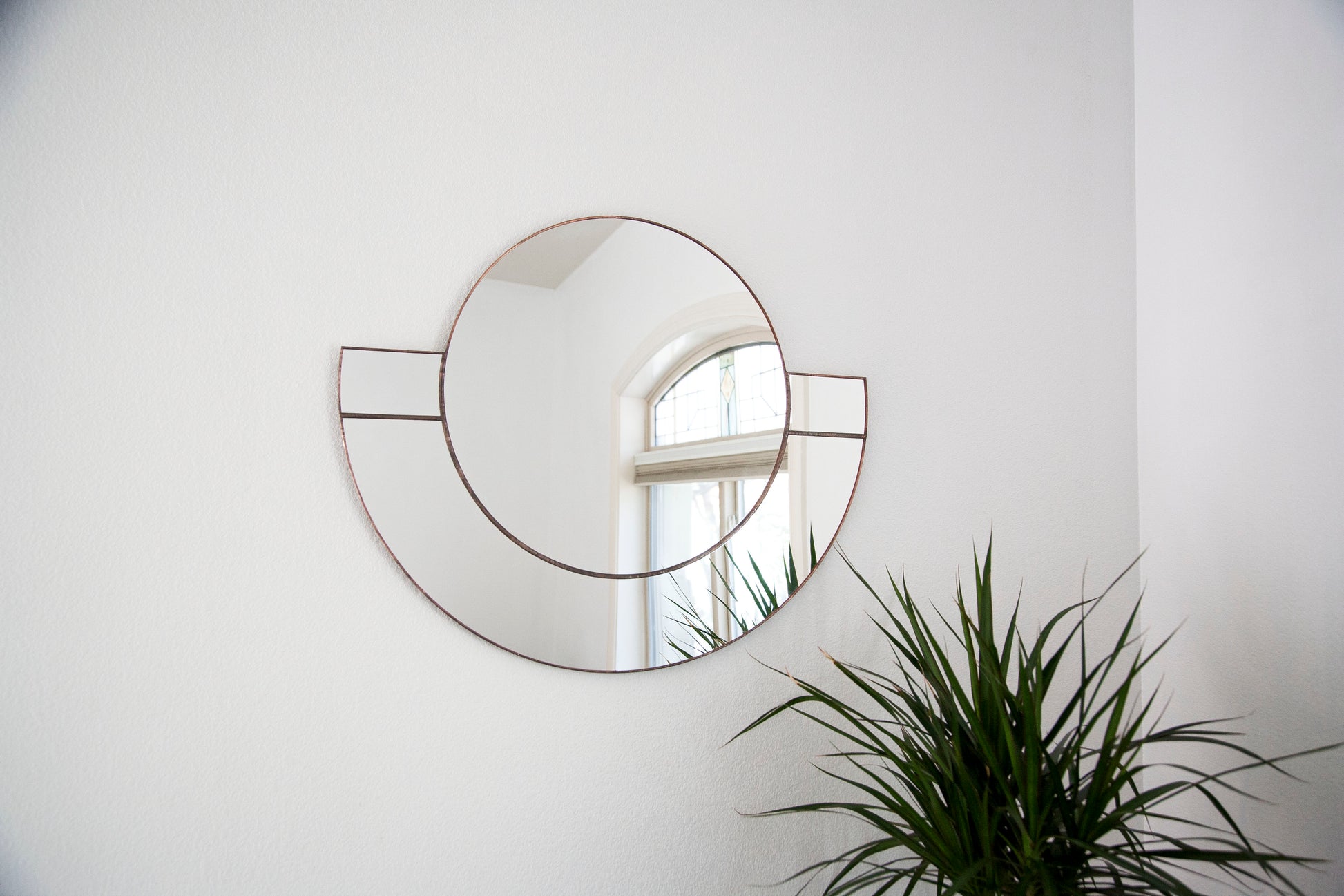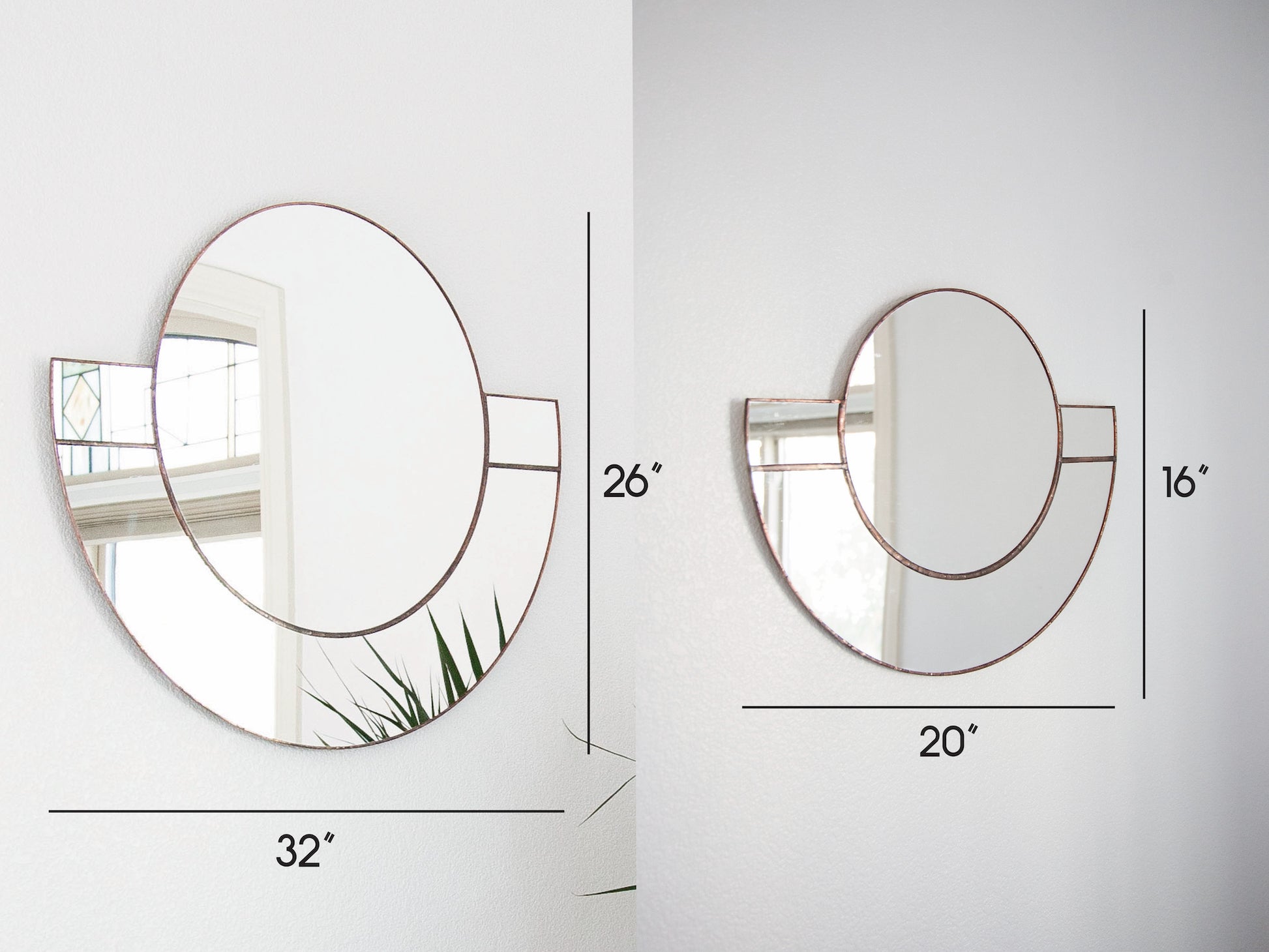 This large statement wall mirror is designed + handcrafted by the artist from beginning to end, using the foiling stained glass method. Cut, assembled, soldered and finished ready to hang. Mirror edges are sealed.