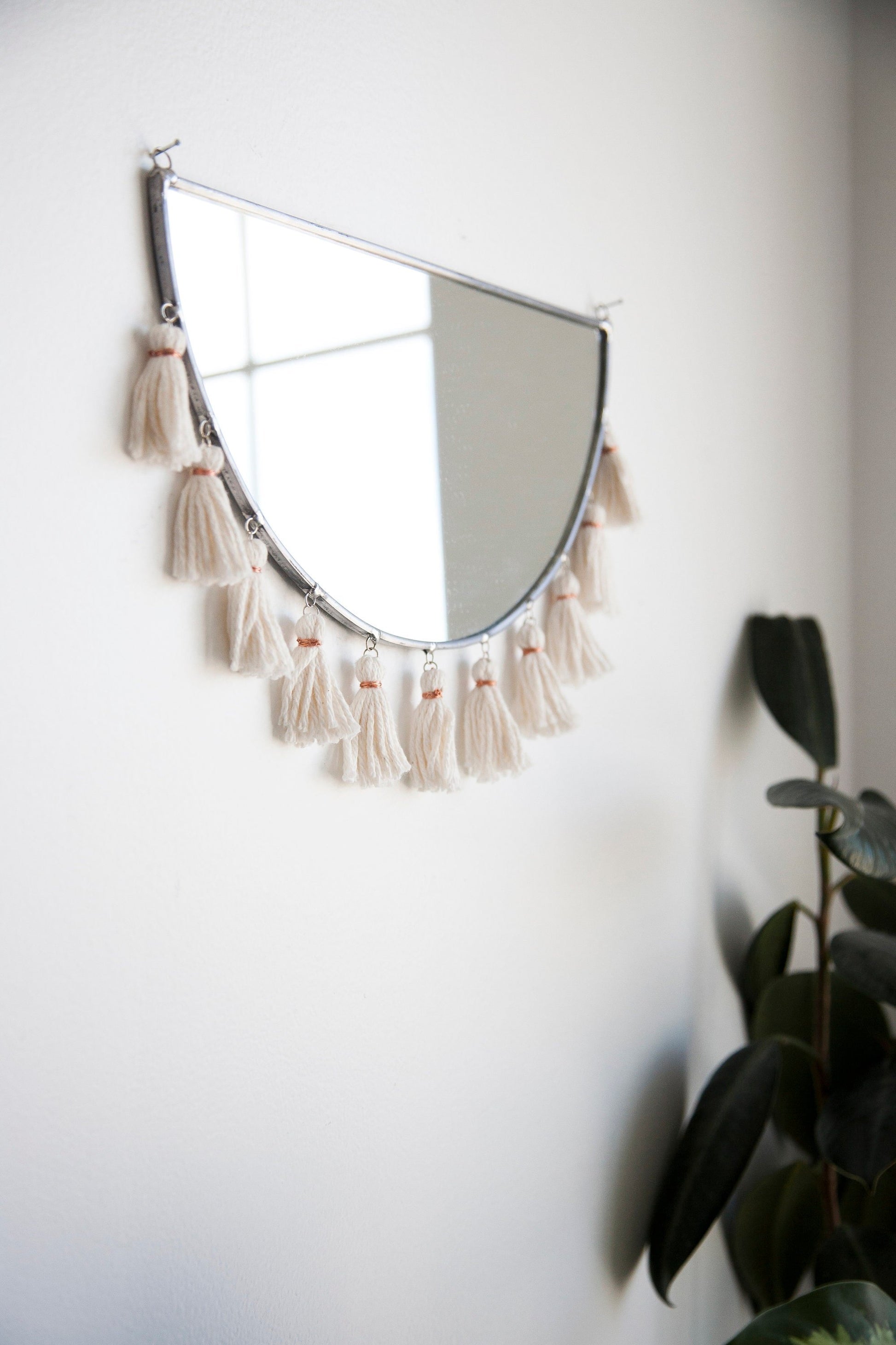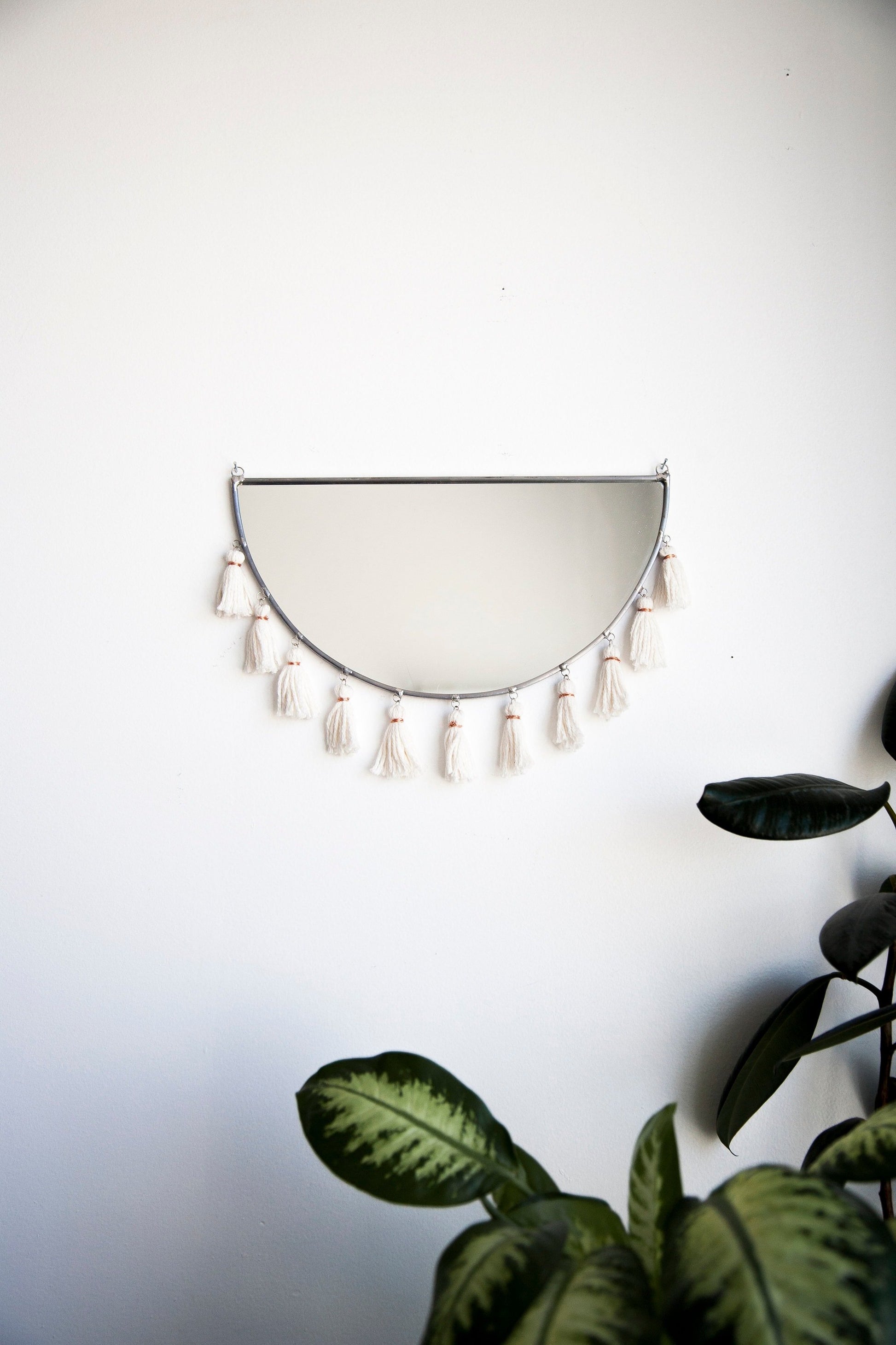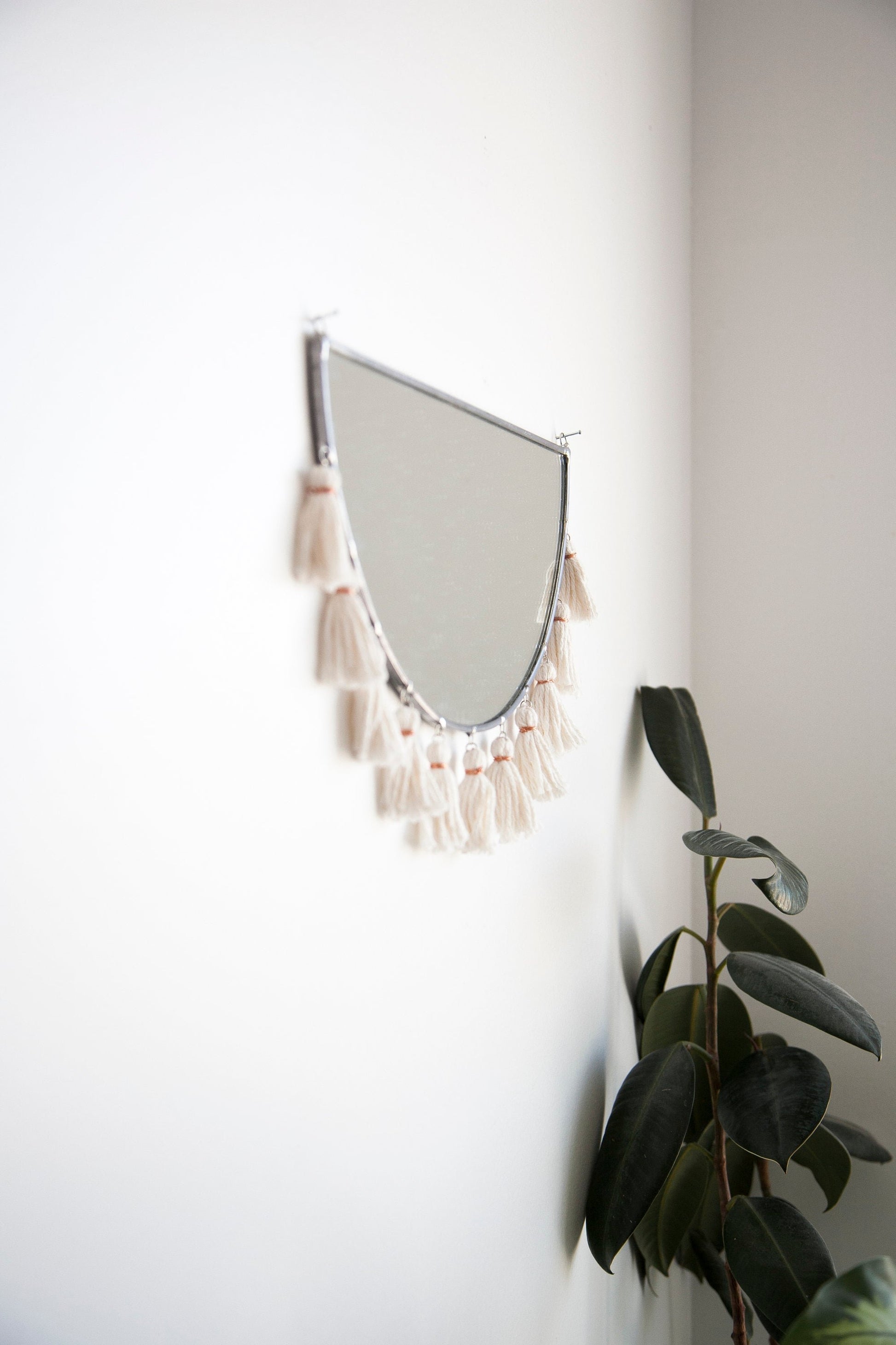Kiesa mirror is cut, sealed and assembled all by hand. Using stained glass techniques with lead came and solder, this minimally designed mirror is detailed with handmade tassels.