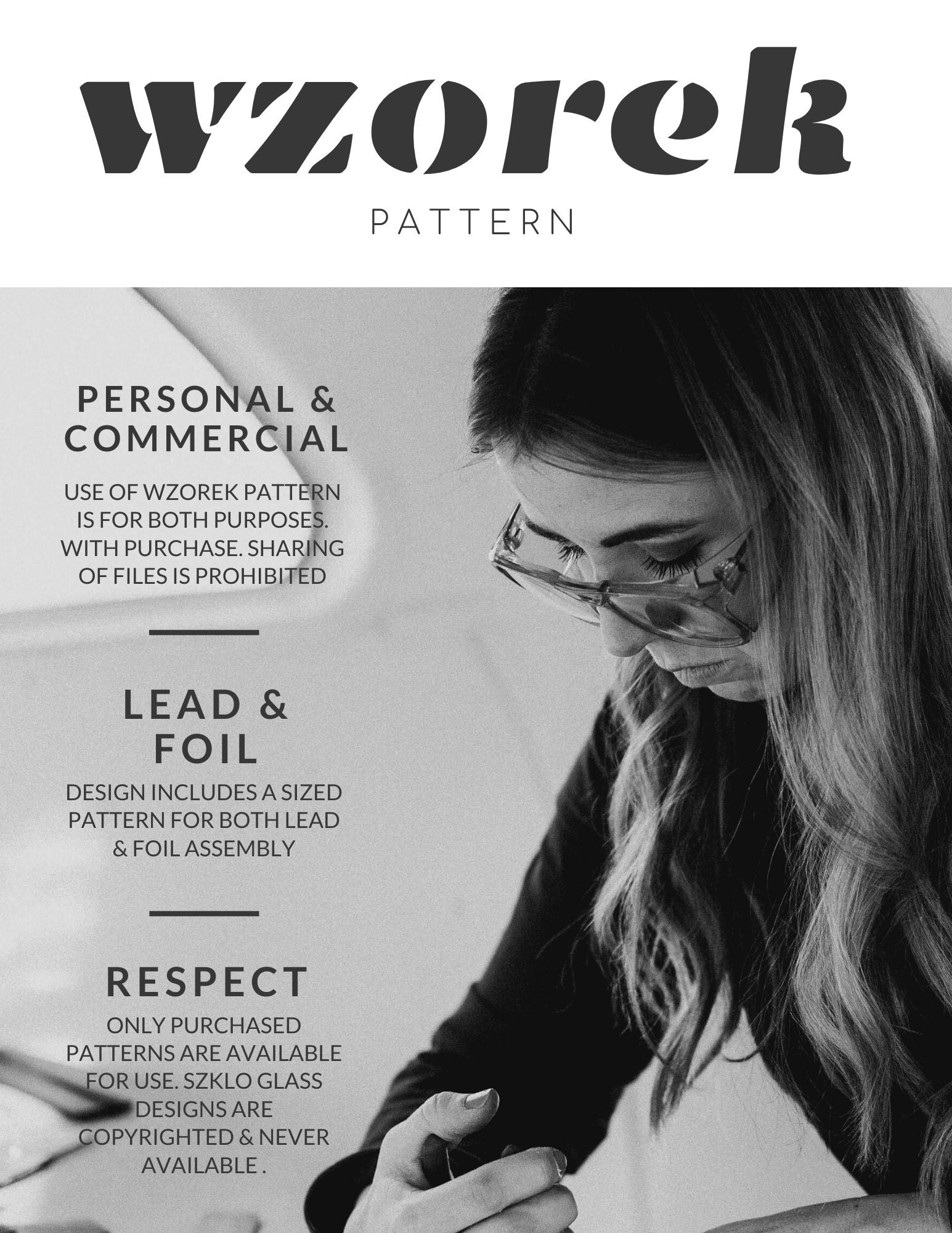 This listing for Wzorek Pattern(s) is for personal and/or commercial use with purchase. Commercial of completed assembled piece, NOT the pattern. Listing price reflects the unusual nature of a pattern available for commercial use. Please credit Wzorek Pattern by Szklo Glass as the owner & original designer.Wzorek Patterns are never allowed to be distributed, shared, or resold in any form. Legal action will be taken. Wzorek Pattern by Szklo Glass is still the owner and copyrighted designer of the original pattern.