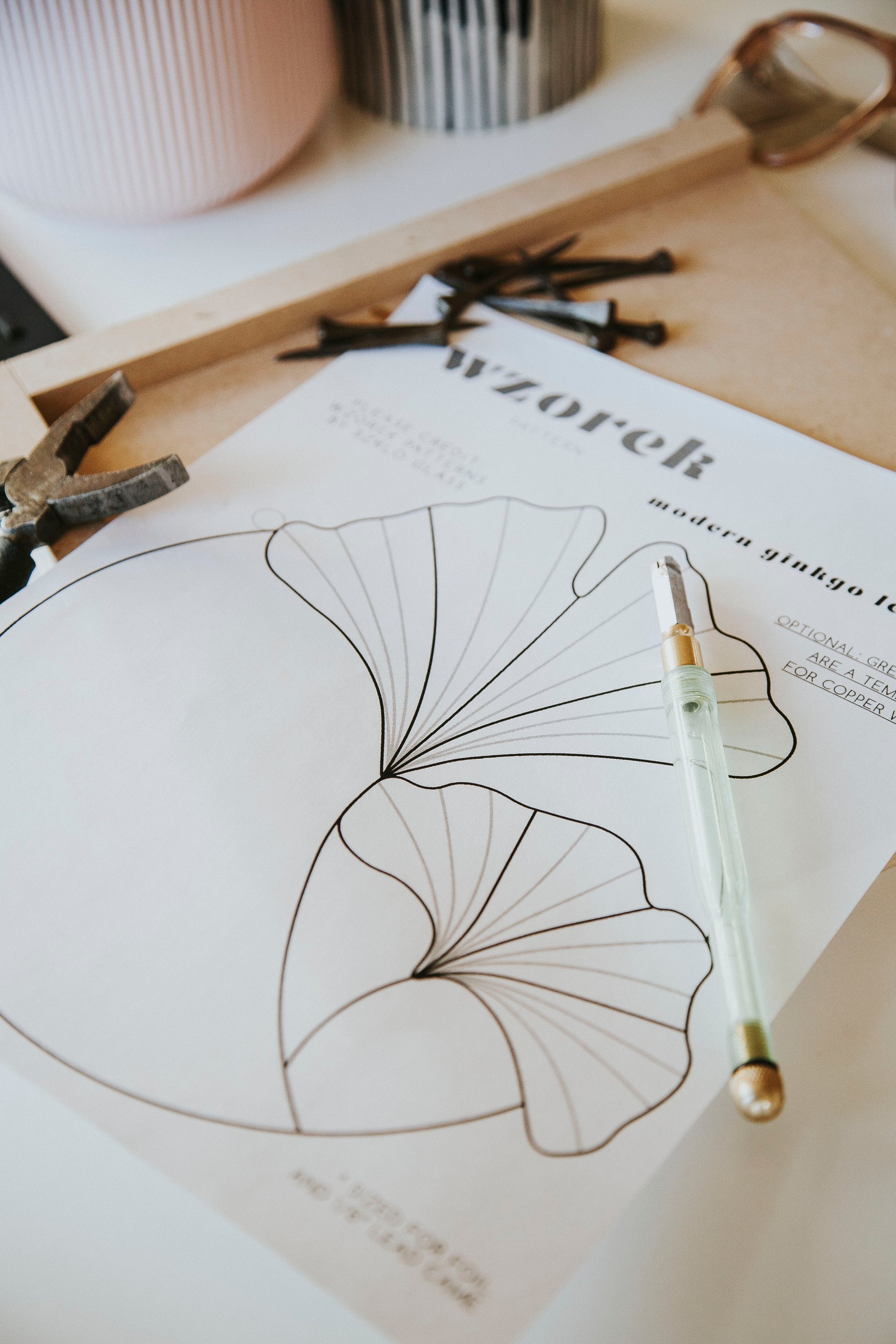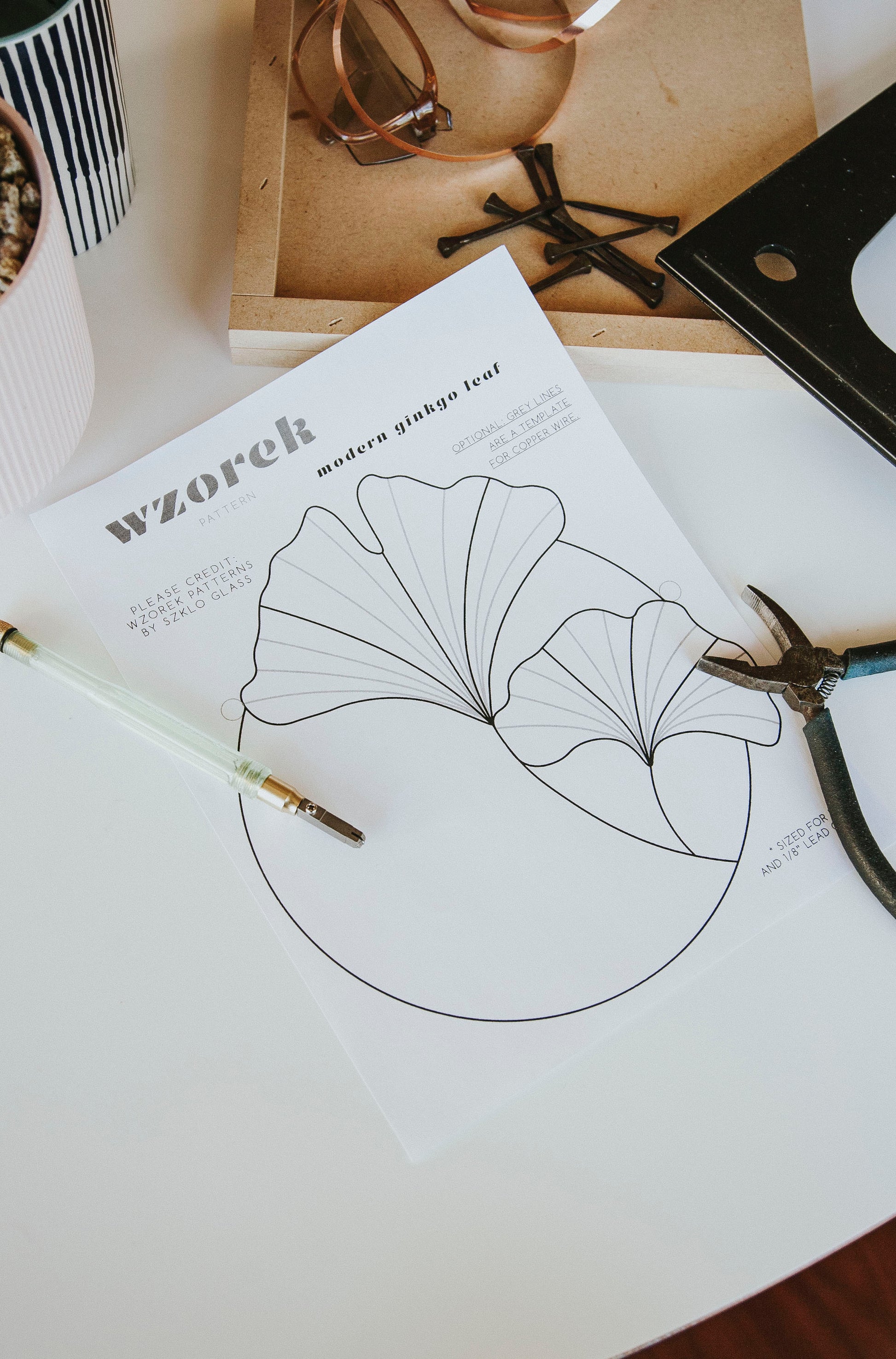 You will receive a contemporary designed ginkgo leaf stained glass pattern, created by the artist of Szklo Glass. Pattern has grey lines that are intended to be used as a guide for placing copper wire on the stained glass piece. This design is perfect for confident beginners to advanced glass artisans. Make unique pieces, using your choice of glass color, without the stress of designing and sketching your own pattern.